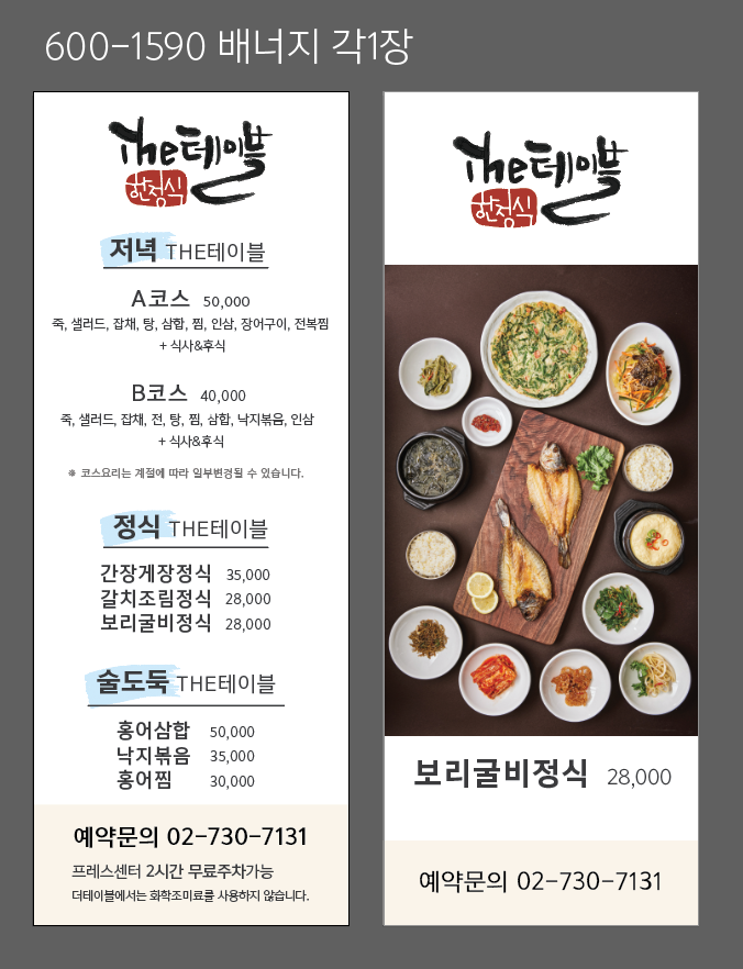 특선상차림정식 49,500 | 맑은물 77,000 | 손님맞이특별상 110,000 | 손님맞이특별상B 165,000