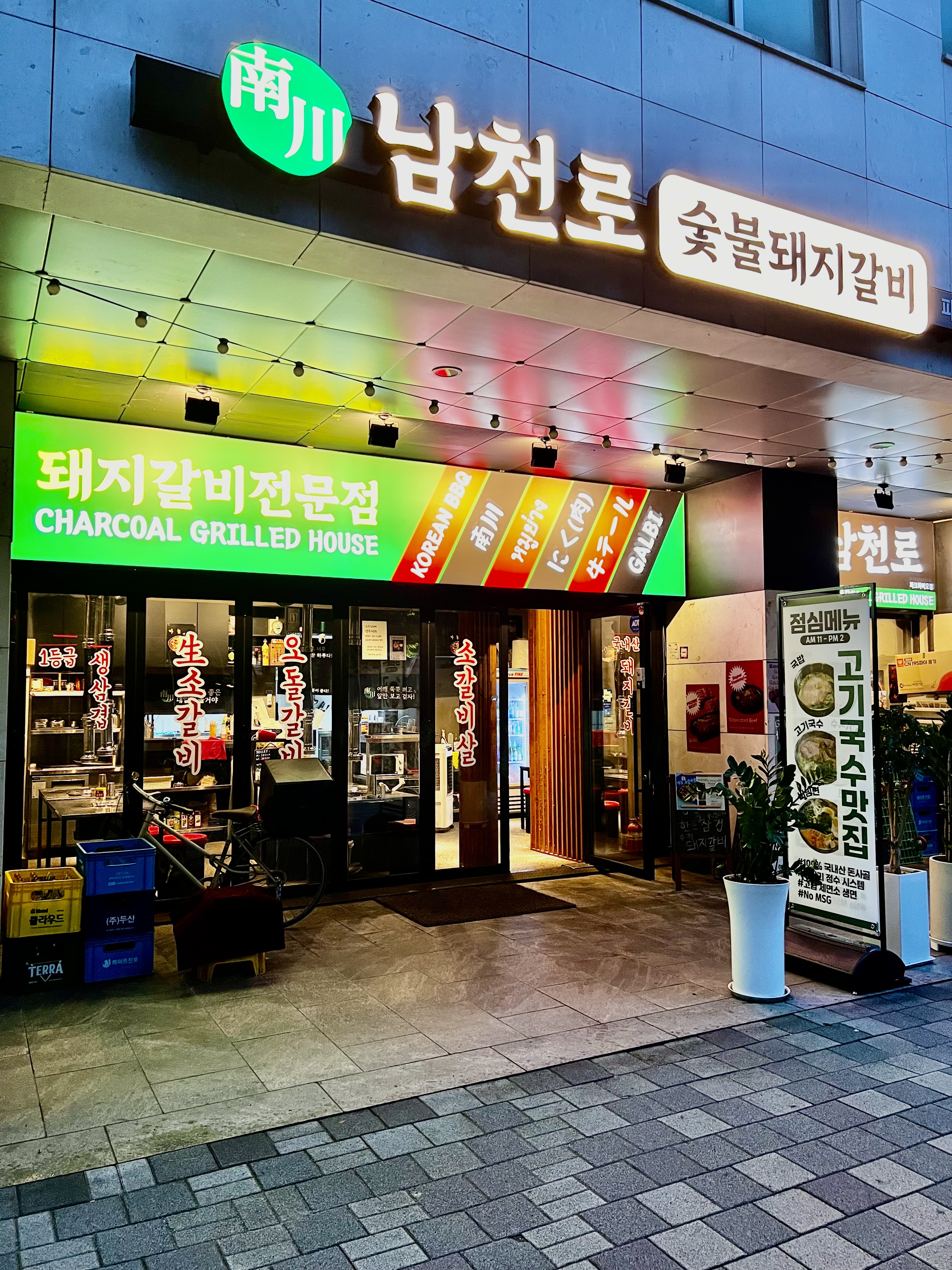 24시간 숙성 돼지갈비 (국내산) 16,000 | 숯불 소 양념구이 18,000 | PRIME生 소 걀비살 (미국산) 19,000 | 마늘 즉석양념 갈비살 20,000 | 1mm 生 삼겹 슬라이스 (국내산) 15,000 | 와규 소꼬리 구이 牛テール 규테루 16,000 | 하림 닭목살 せせり 세세리 9,000 | 오돌갈비 (국내산) 14,000 | 물쫄면 7,000 | 고기 국수 (lunch only) 10,000 | 한돈 사골국밥 (lunch only) 9,000 | 콜키지 10,000