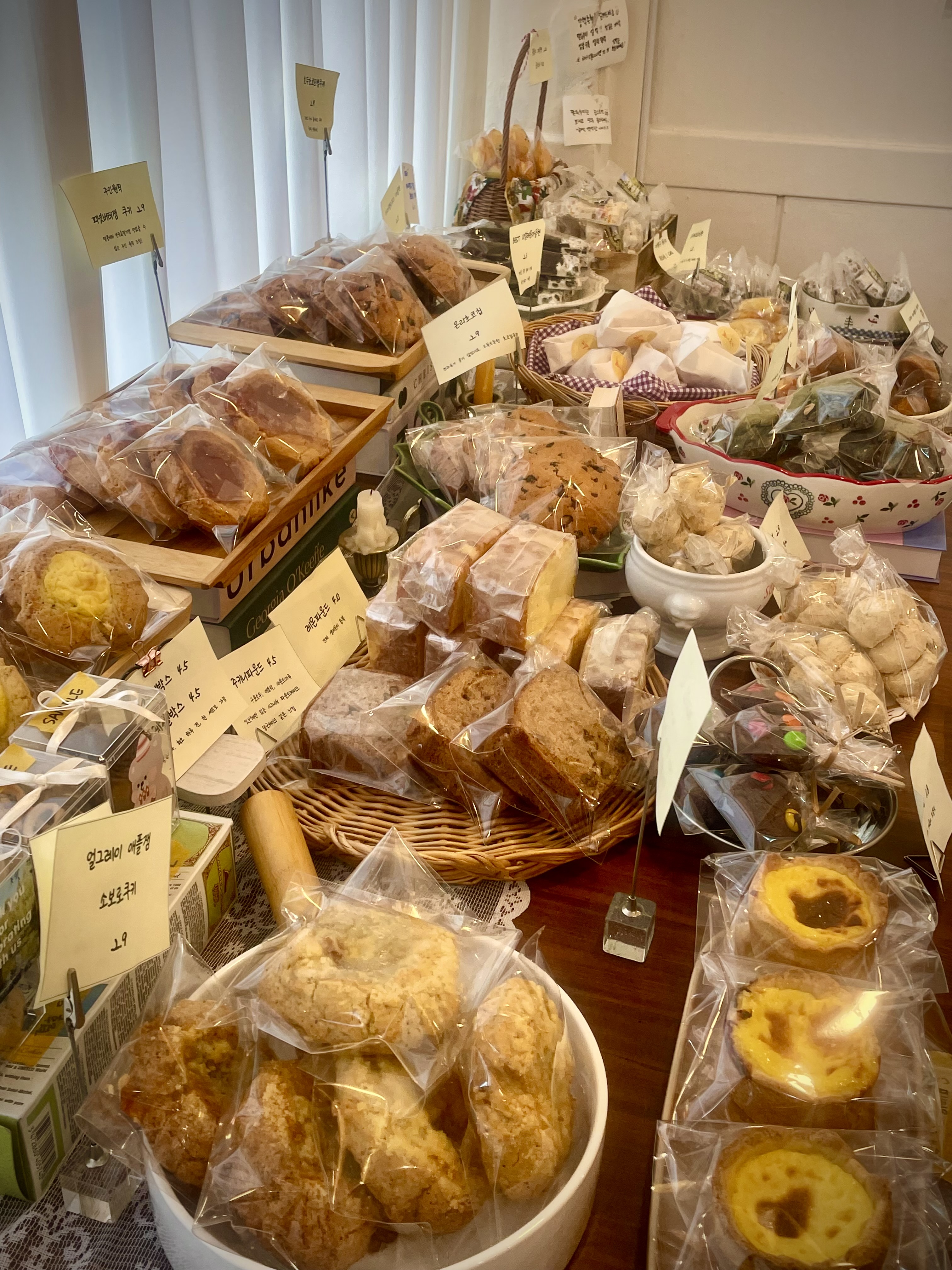 두바이쫀득쿠키 5,500 | 마시멜로우쫀득쿠키 3,500 | 고메버터 휘낭시에 1,800 | 프랑스 고메버터 소금빵 2,200 | 진짜카다이프+피스타치오 두바이초콜릿 6,000 | 레몬마들렌 2,300 | 얼그레이크림브륄레쿠키 2,900 | 고메버터마들렌 2,200 | 고구마소보로마들렌 2,500 | 무화과크림치즈 휘낭시에 2,500 | 리얼레몬파운드 4,000 | 밀크연유마들렌 2,300 | 에그타르트 3,500 | 피넛버터잼쿠키 2,900 | 호두초코르뱅 2,900 | 쑥쿠키 2,900 | 쌀로 만든 주키니파운드 4,500 | 리얼브라우니 3,500 | 수제라면땅 3,500 | ★답례품/단체간식★ 변동가격(업주문의)